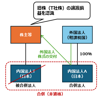 なお、ここでいう非適格合併については、コーポレート・インバージョン対策税制により非適格合併となる場合だけではなく、通常の組織再編税制の規定により非適格合併に該当する場合も含まれます。