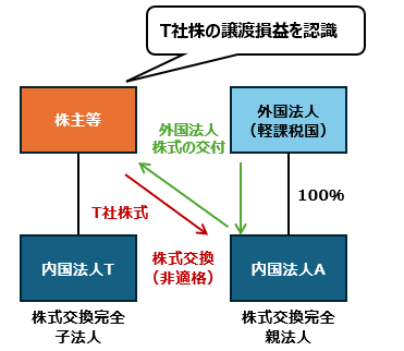 なお、ここでいう非適格株式交換については、合併と同様に、コーポレート・インバージョン対策税制により非適格となる場合だけではなく、通常の組織再編税制の規定により非適格に該当する場合も含まれます。