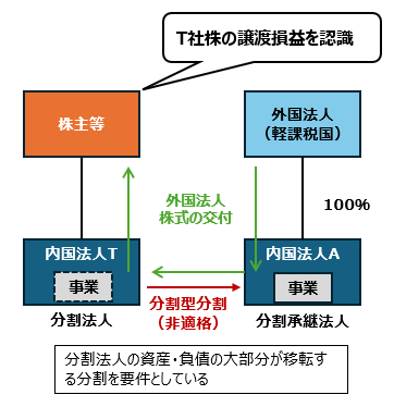 なお、ここでいう非適格分割については、合併と同様に、コーポレート・インバージョン対策税制により非適格となる場合だけではなく、通常の組織再編税制の規定により非適格に該当する場合も含まれます。
