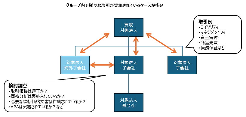 このような移転価格税制の観点での対応を検討していない法人グループは少なくないので、税務DDにおいて、関連会社間取引において何らかの論点が検出されるケースは多く見られます。