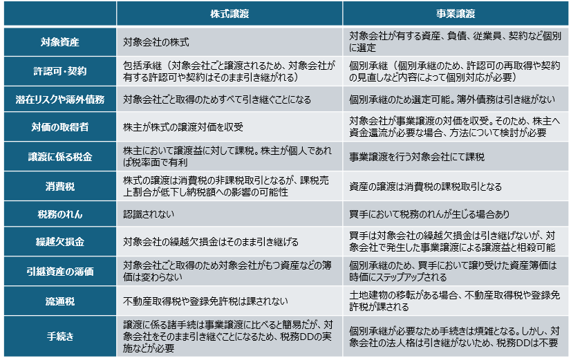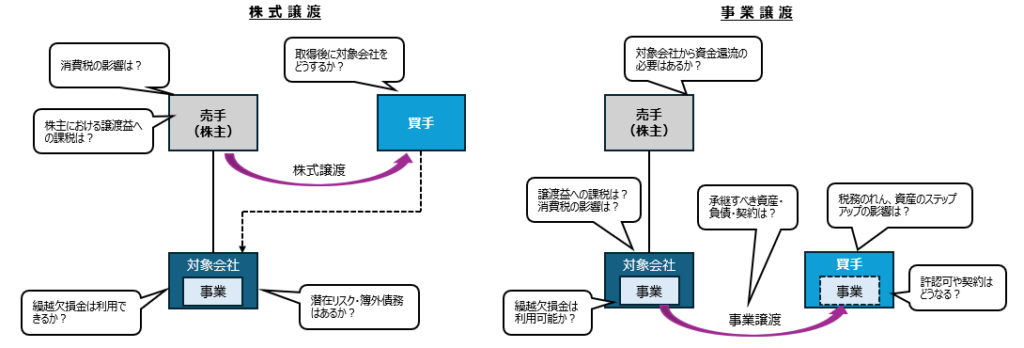 また、一時的な取引の影響のみならず「将来的に引き継いだ法人や事業をどうするか」「他の法人との合併の可能性があるか」「将来、譲渡やIPOを行うか」といった点も考慮して、スキームを選択する必要があると考えます。