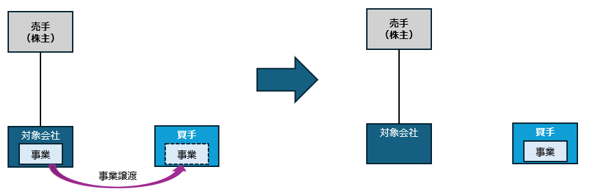 対象会社が、事業(事業に必要な資産や負債)を買手に譲渡する。
