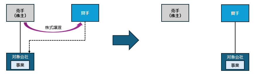 売手が、対象会社株式を買手に譲渡し、買手から株式譲渡の対価を取得する。