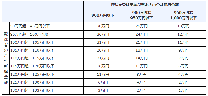また、合計所得金額85万円を超えても、一定の控除は受けることができ、合計所得金額123万円(給与収入であれば188万円)までは一定の控除を受けることができます。