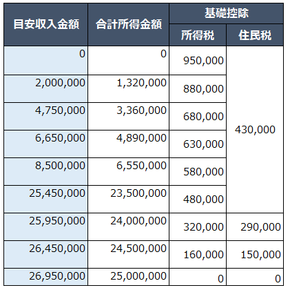 なお、基礎控除の改正は所得税分のみであり、住民税は改正されていません。