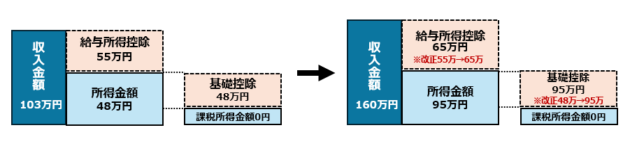 所得税が発生する壁:改正前103万円→改正後160万円