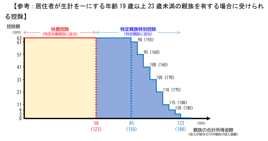 今回の税制改正により、19歳から22歳までを対象として特定親族特別控除が創設され、19歳から22歳までの親族については、合計所得金額85万円(給与収入であれば150万円)までは、親などにおいて所得控除を受けられることになりました。