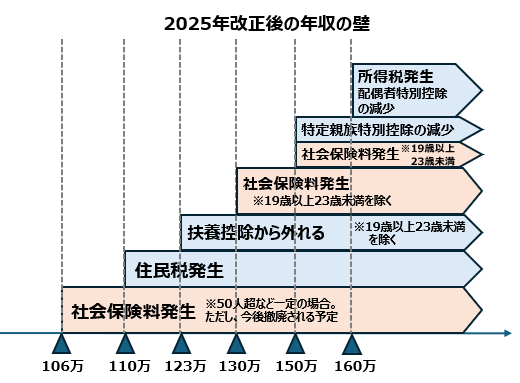 このように、年収の壁は2025年税制改正の影響で大きく変更が生じています。