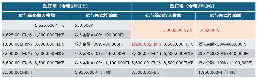 給与所得控除額は25年の改正で最低保障額が65万円になりました。